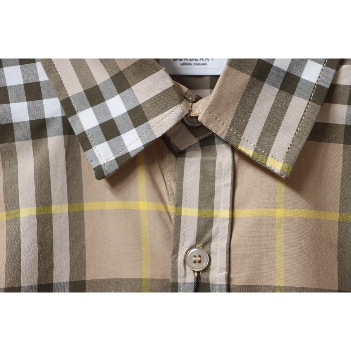 Burberry Tartan Motif Cotton Long Sleeve Shirt Beige – BRS034