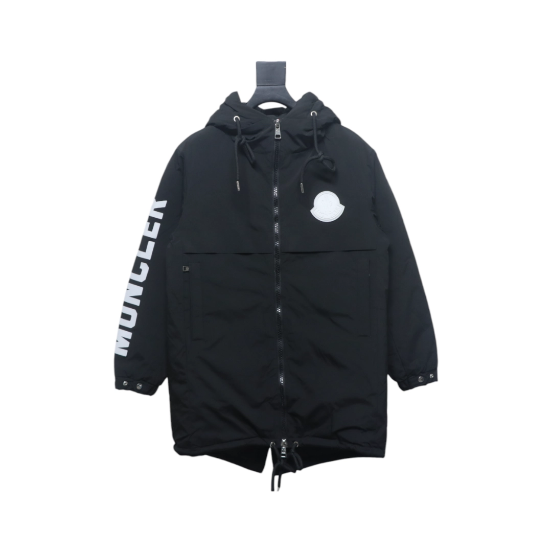 Moncler Sleeve LOGO Lettering Long Down Jacket Black – MC166