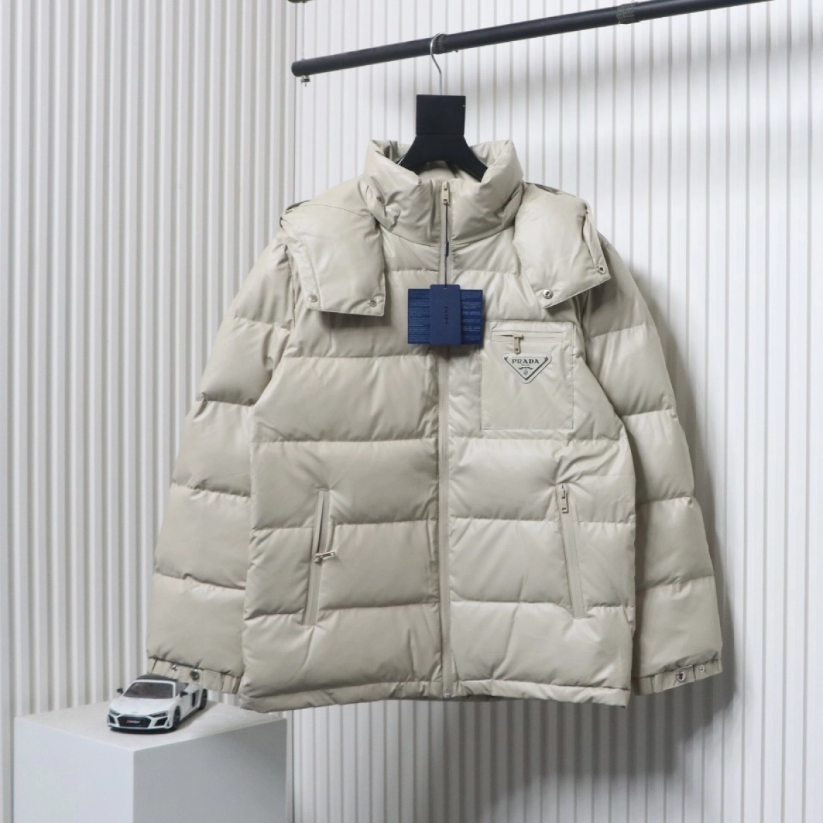 Prada 21fw Classic Triangle Logo Detachable Down Jacket White – PC015